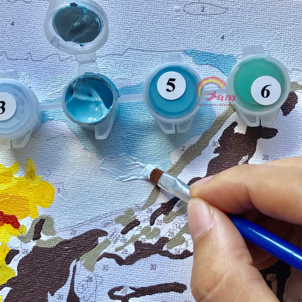 ✔ Lấy màu trong lọ màu tô lên ô có số tương ứng, màu có thể tô trực tiếp luôn không cần pha lại. Nhưng nếu cảm thấy màu hơi khô bạn có thể cho thêm một vài giọt nước và quậy thật kỹ nhé.
