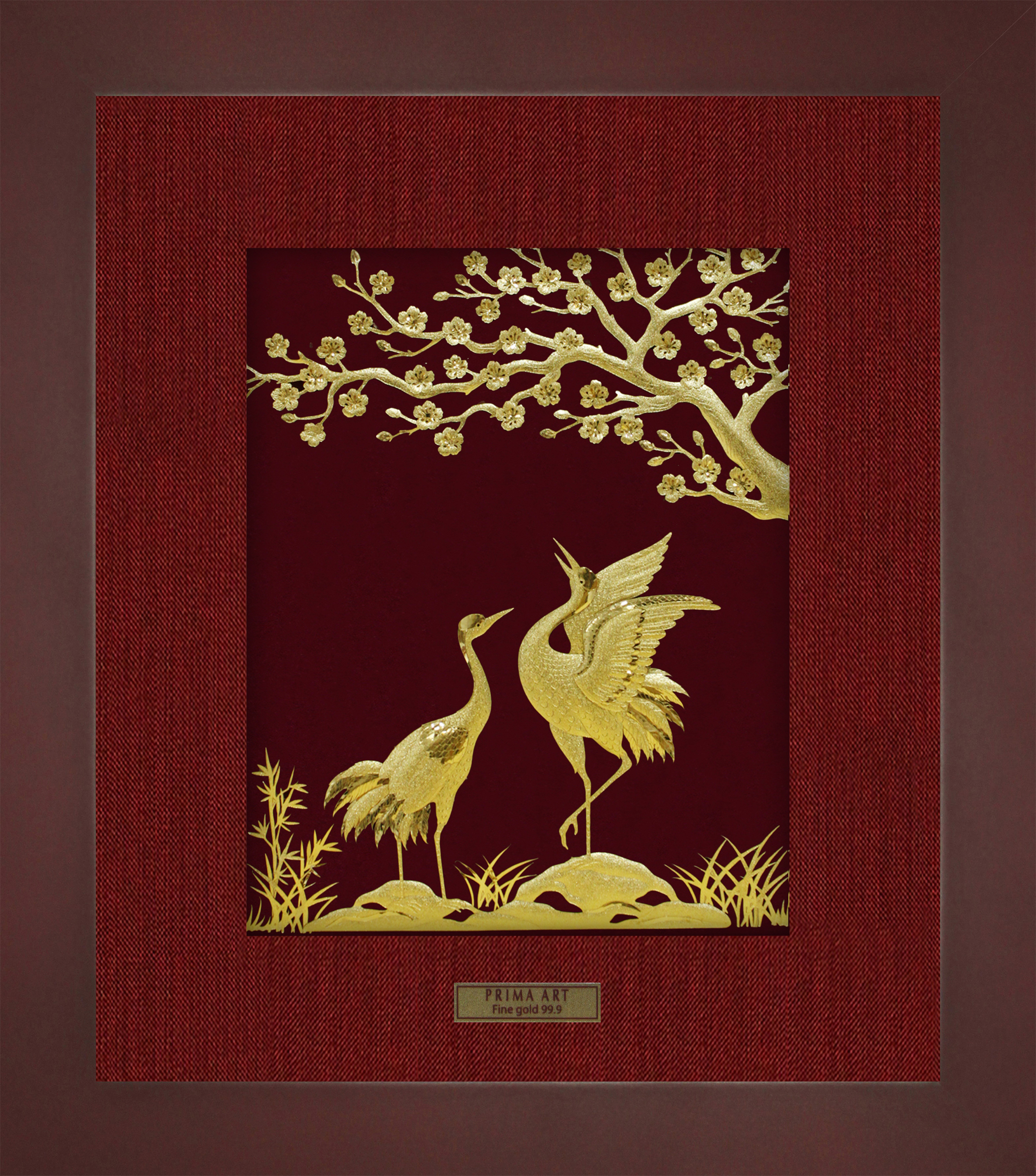 • Sản Phẩm: Tranh Vàng 24K PRIMA ART - HẠC VÀNG VÀ CÀNH MAI 1 - Kích thước 25 x 29 cm - CGS-0551-02