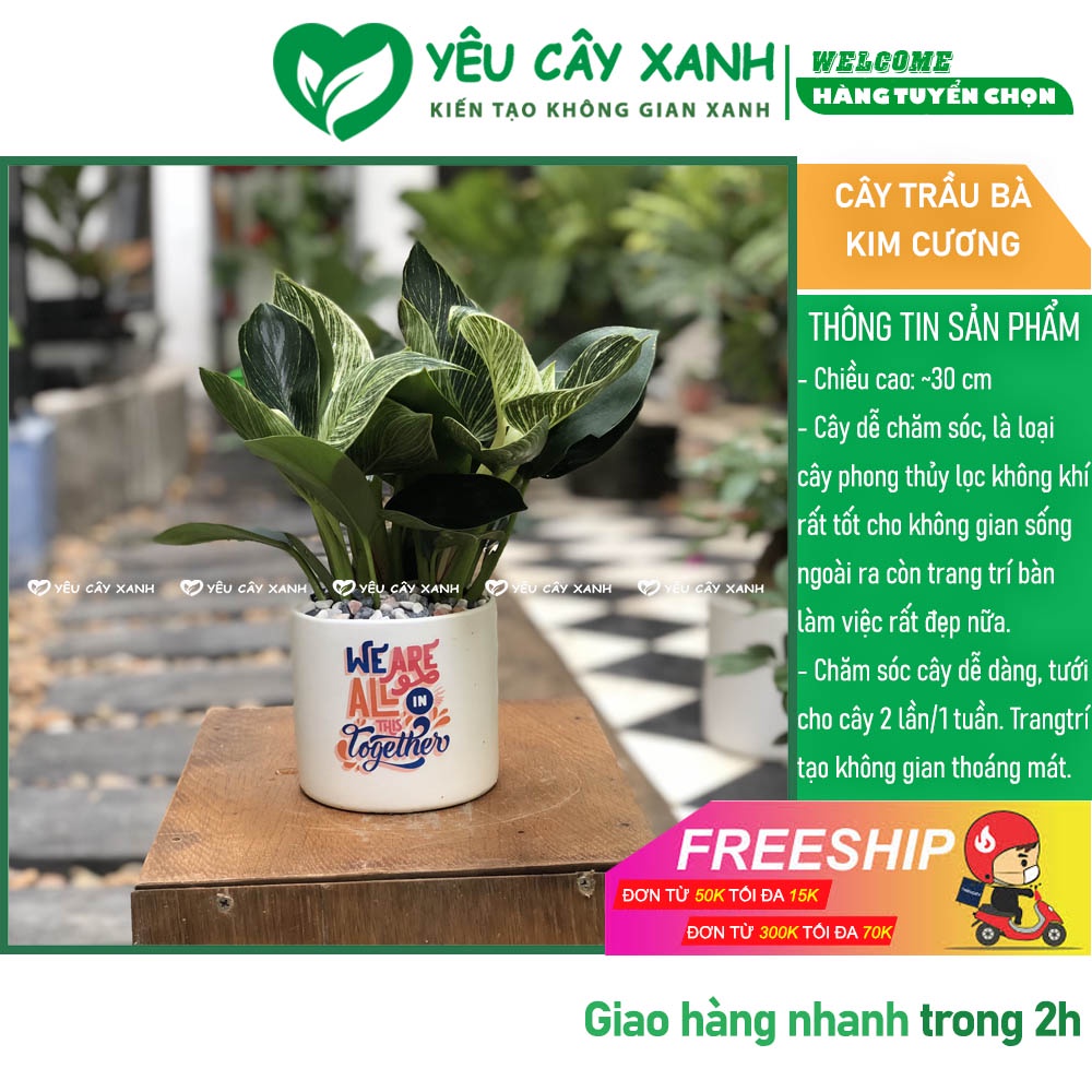Cây Trầu Bà Đế Vương Sọc Chậu Sứ💚 1. YÊU CÂY XANH CAM KẾT