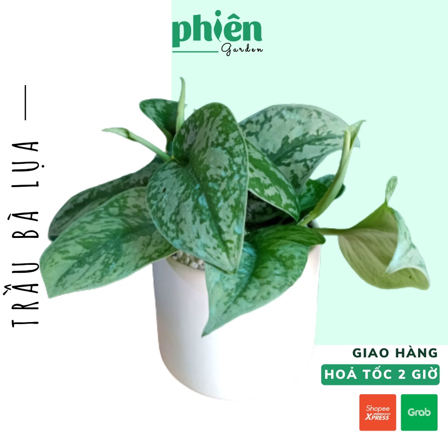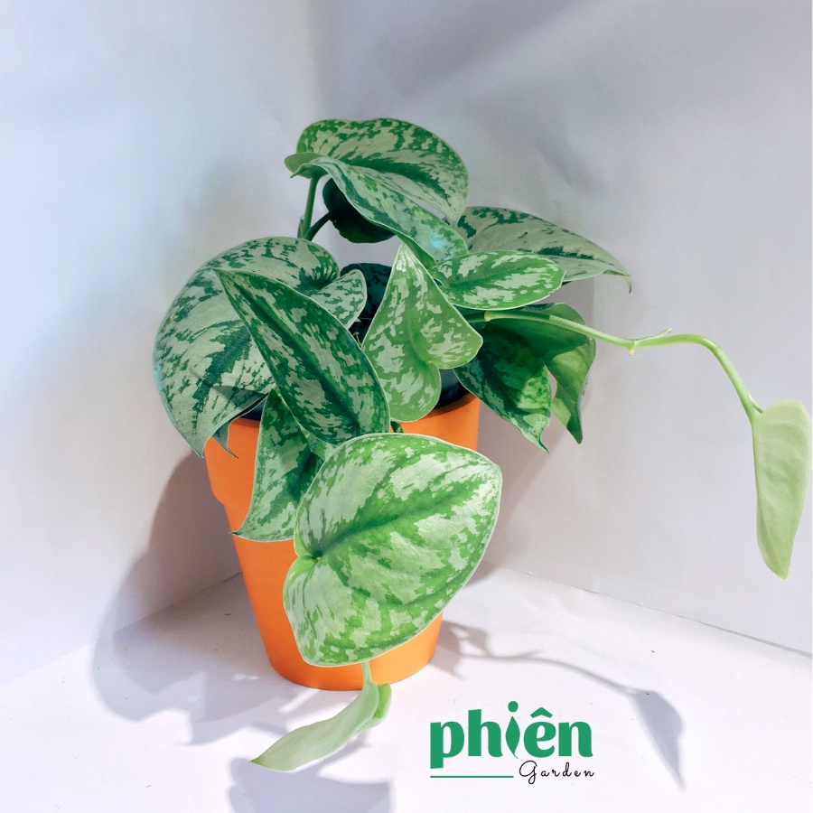 🍀Mô tả: Cây trầu bà lụa là một loài thực vật dây leo mạnh mẽ có tán lá màu xanh lục nhạt lốm đốm ánh bạc, phản chiếu ánh kim. Lá hình tròn hoặc thuôn dài, đầu nhọn. Mặt lá màu xanh mượt như nhung, có nhiều mảng hoặc đốm màu xanh bạc, màu lá trong và đẹp.