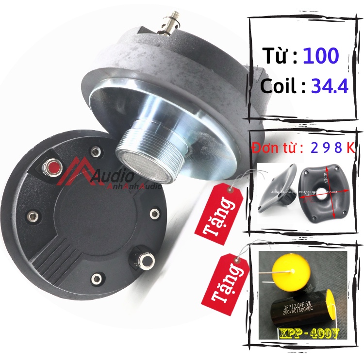 Treble 350 Pa hàng nhập China , Từ lớn 100 mm x 15 mm , thay thế nâng cấp được cho loa treble củ 250 , hàng chọn lọc tiếng hay hơn thị trườngCoil 34.4 mm