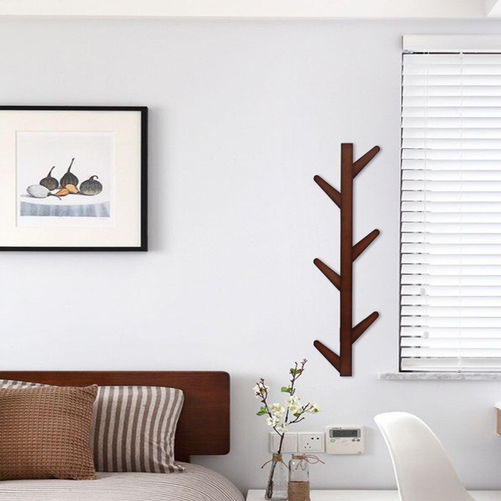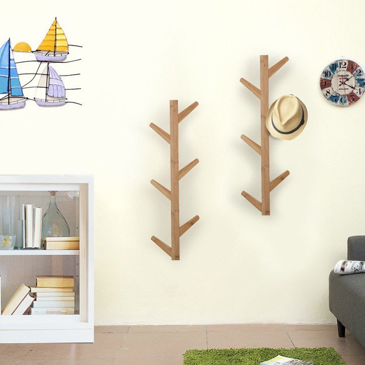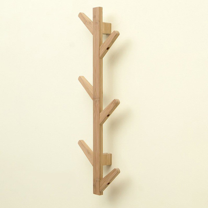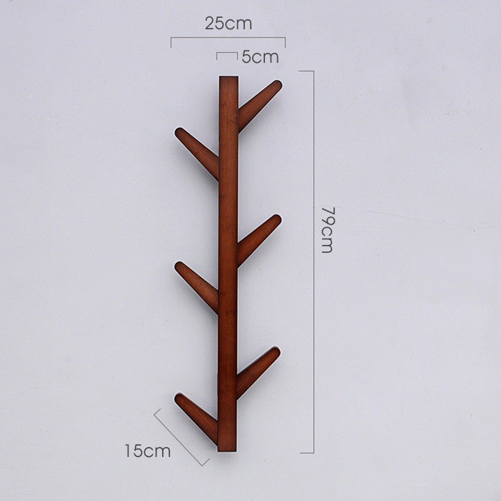 Móc treo quần áo gắn tường gỗ hình cây 6 tay 79x25cm