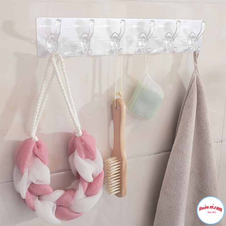 Thanh Treo Đồ Dán Tường 6 Móc Liền Mạch Trong Suốt Siêu Dính Loại 2