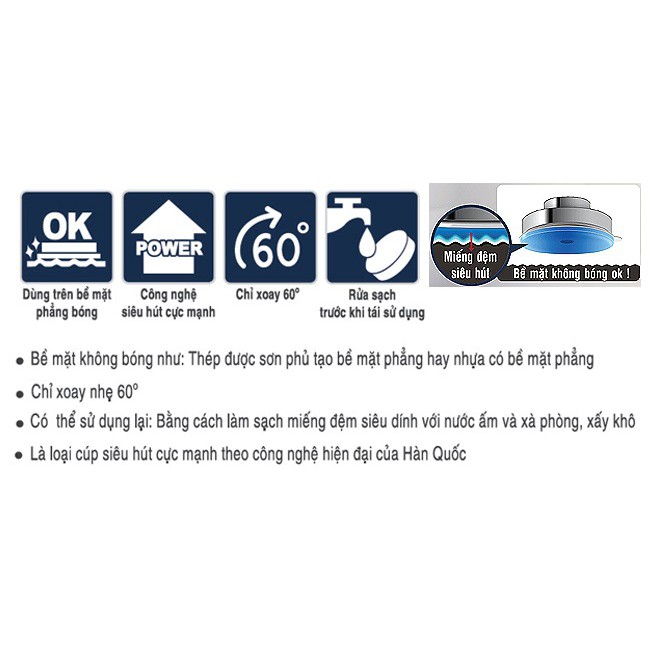 - Sử dụng được trên các bề mặt phẳng , có khả năng giữ chân không.
