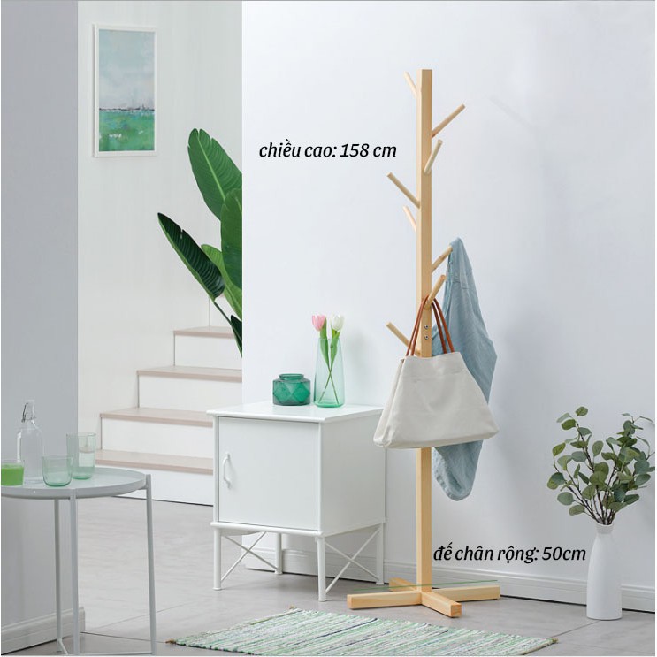 - Cây treo quần áo dáng đứng gỗ thông giữ nguyên màu sắc của gộ, không sơn màu. Vì vậy với những khách hàng muốn trang trí không gian theo phong cách vintage cũng vô cùng phù hợp.
