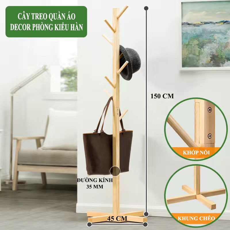 Cây treo quần áo 100% gỗ thông cao cấp - Phong cách Hàn Quốc Decor nhà cửa - Kt 120 x 45 x 35cmThông tin sản phẩm