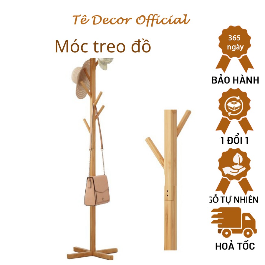 Cây treo quần áo gỗ thông cao cấp Tee Decor - Móc treo đồ gỗ đứng phong cách Hàn Quốc - Kt 120 x 45 x 35cm - Bh 12 tháng