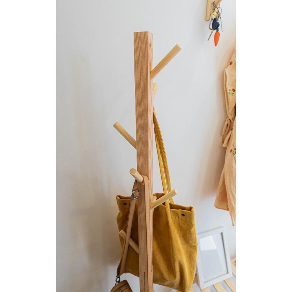 - Cây treo quần áo, túi xách được làm từ gỗ thông cao cấp nên có đội bến, chắc chụi trọng tải chống hao mòn.