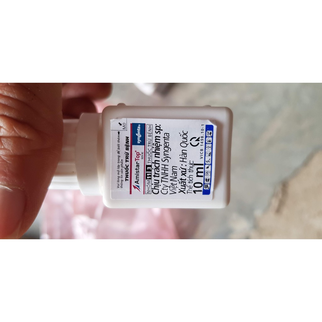 Amistar Top 325SC diệt tế bào nấm bệnh bằng hai cách: (1) Ngăn cản sự hình thành (ATP) ở ty thể ( năng lượng được cung cấp cho hoạt động sống của tế bào nấm bệnh) (2) Ức chế tổng hợp Ergosterol ( thành phần cấu trúc nên màng tế bào nấm bệnh)1 lọ pha bình 16l nước