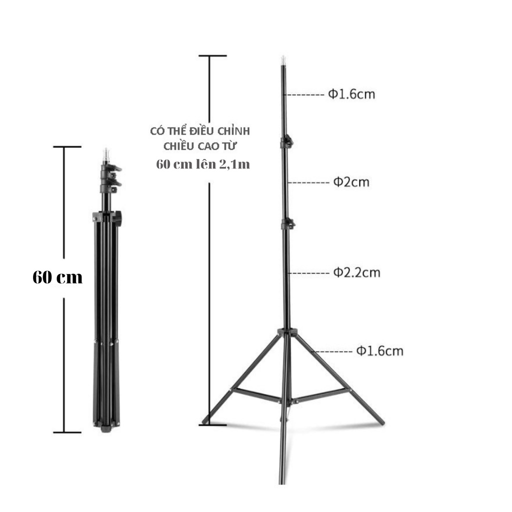 - Chân cao tối đa 2,1m, gấp gọn 60cm.