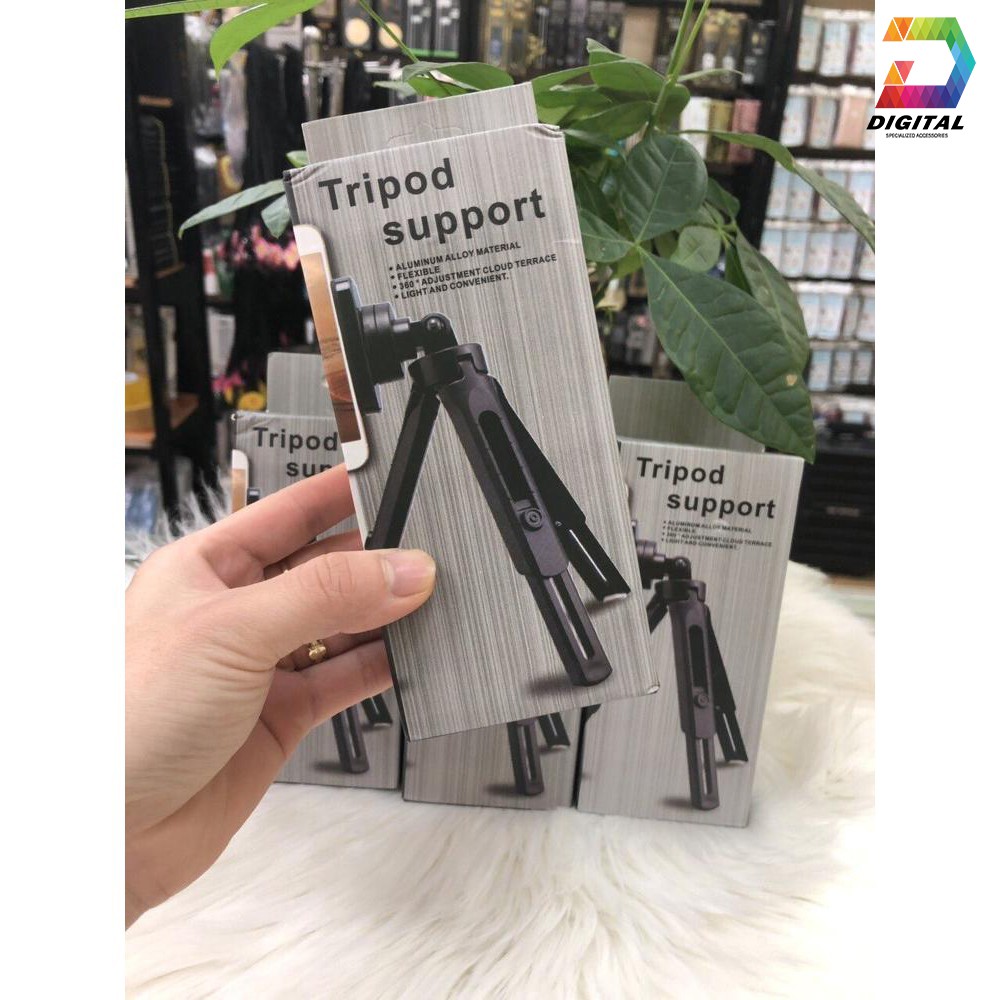 - Là một nhiếp ảnh gia hay chỉ đơn thuần là đam mê chụp ảnh thì cũng không thể thiếu cho mình một chiếc chân máy ảnh được vì nó sẽ giúp cho bạn có những bức ảnh đẹp hơn, thuận tiện hơn trong việc chỉnh góc, quay phim hay chụp ảnh gia đình. Vì thế shop xin mang đến cho bạn 1 sản phẩm mới đó chính là Tripod Support Cho Điện Thoại, Máy Ảnh Xoay 360 Độ.