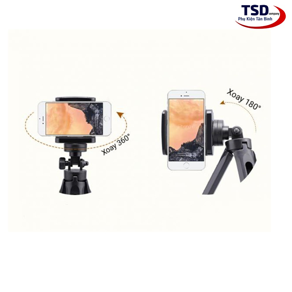 - Thiết kế chắc chắn với 3 chân chống làm bằng hợp kim nhôm với kiểu dáng hiện đại, nhỏ gọn, dễ dàng di chuyển. - - - Đặc biệt, giá đỡ có thể xoay 360 độ để tùy chỉnh ghi lại hình ảnh ở nhiều góc độ khác nhau.