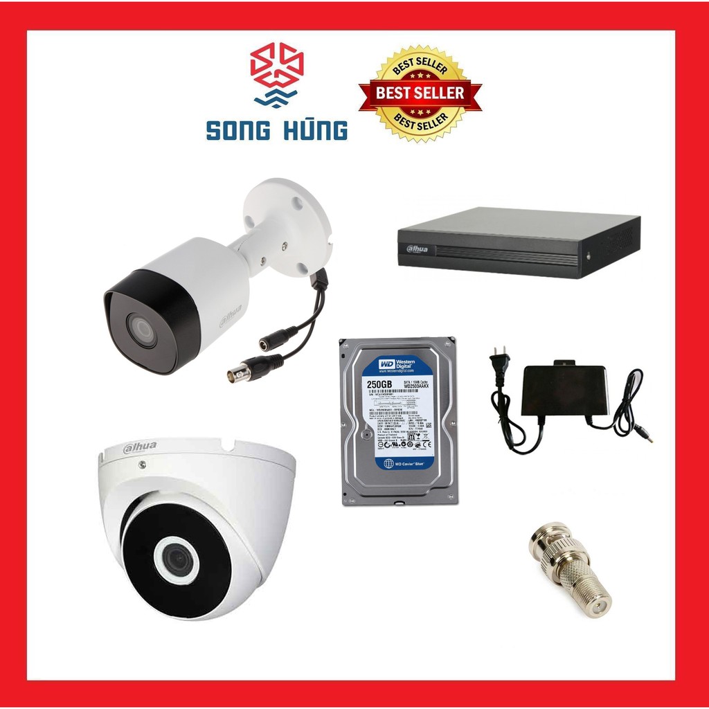 Trọn bộ 1-4 Camera Dahua HDTV HAC-T2A21P (cầu ) HAC-B2A21P (thân) 2MP 1080P tặng kèm phụ kiện và ổ cứng