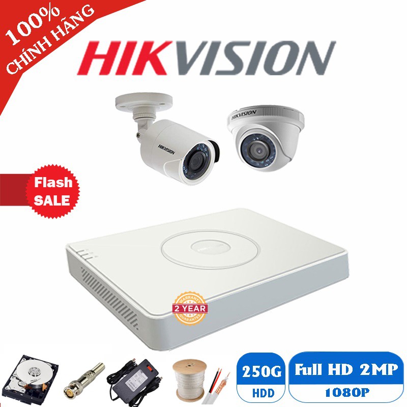 Trọn Bộ 2 Camera giám sát Hikvision Full HD 1080P - 2M + Full phụ kiện để khách tự lắp