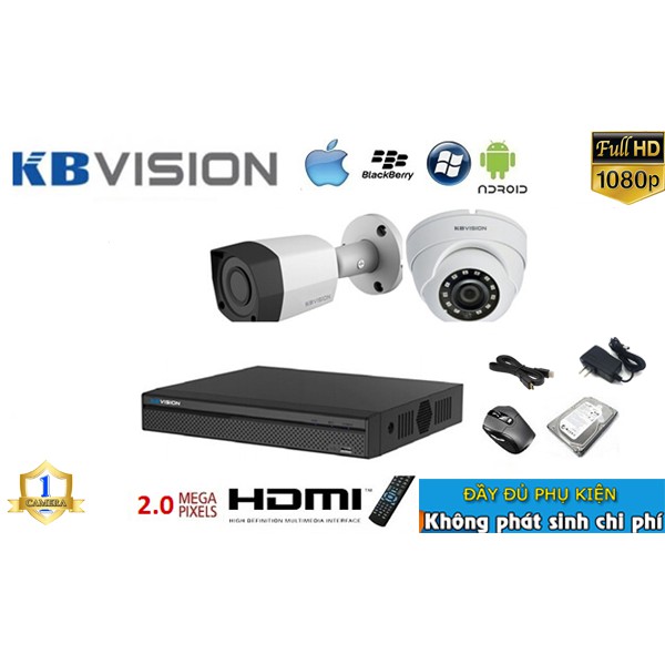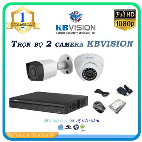Trọn bộ 2 camera KBVISION Full HD 1080p kèm HDD 500G - Đầy đủ phụ kiện