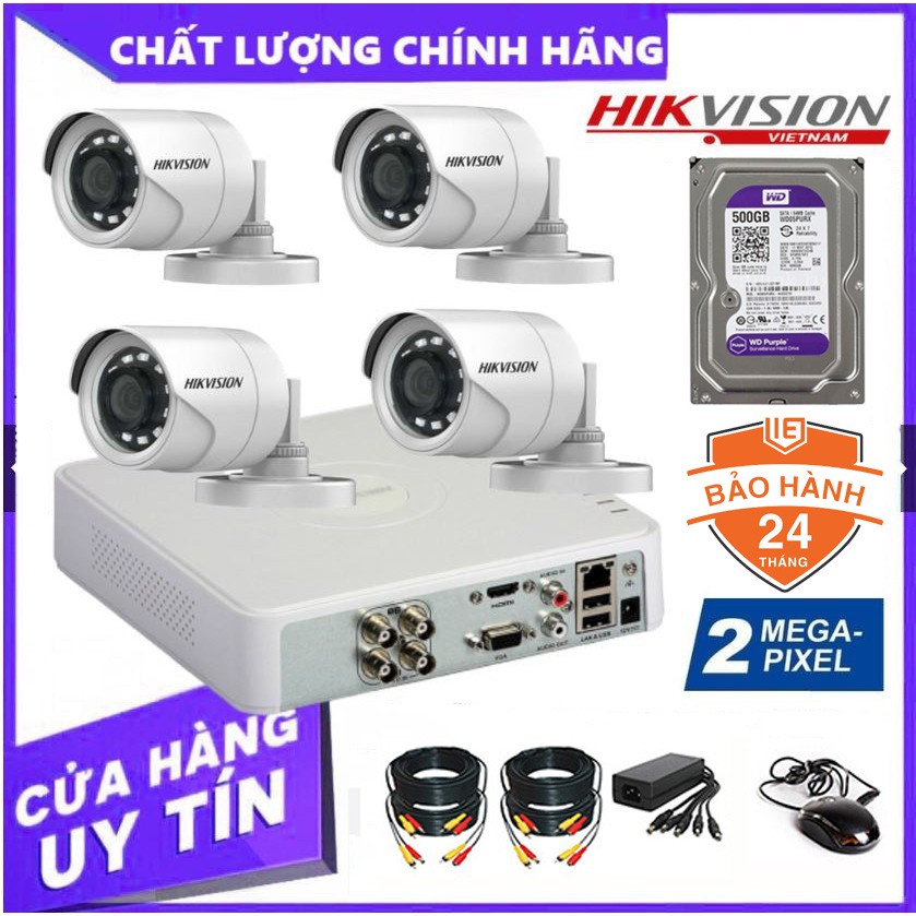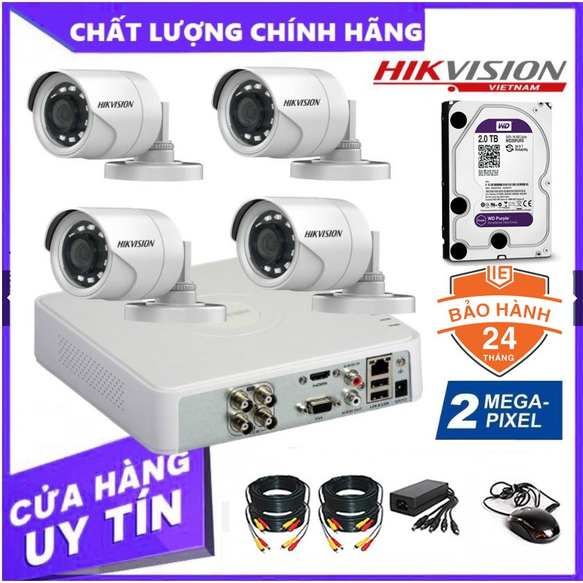 Trọn Bộ 4 Camera giám sát HIKVISION 2.0MP - Tặng kèm HDD (500GB/1TB/2TB) + đầy đủ phụ kiện lắp đặt