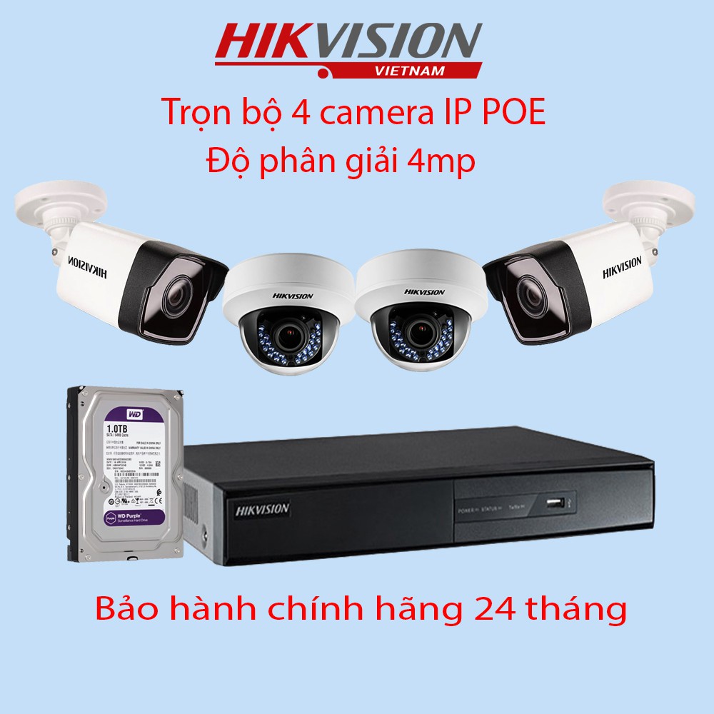 Giới thiệu Trọn Bộ 4 Camera IP PoE Hikvision 4.0MP Tầm Xa Hồng Ngoại 30M Cấp Nguồn Qua Cáp Mạng PoE - Hàng Chính Hãng