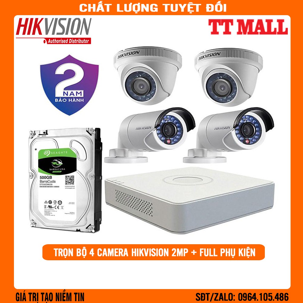 Trọn Bộ 4 Camera Quan Sát Hikvision 2.0 megapixel Full HD 1080P kèm HDD 500G và toàn bộ phụ kiện lắp đặt Khuyễn mãi 4 sợi dây 20 mét dây liền nguồn được đúc sẵn 2 đầuHIKVISION là 1 trong những nhà sản xuất hàng đầu thế giới về các sản phẩm giám sát hình ảnh và những biện pháp. Được thành lập vào năm 2001, hiện tại Hikvision là đơn vị thế giới với hơn 20.000 nhân viên – trong ấy với 9.000 kỹ sư Nghiên cứu & phát triển (R&D). có đội R&D to nhất trong ngành nghề công nghiệp an ninh mang 621 đăng ký sáng chế và 259 bản quyền phần mềm giúp doanh nghiệp có khả năng đổi mới liên tục. Sản phẩm của đơn vị với chất lượng cao, đạt những tiêu chuẩn quốc tế: ISO, CE, CCC, UL, FCC, RoHS… những sản phẩm này đã được dùng tại hơn 100 quốc gia.