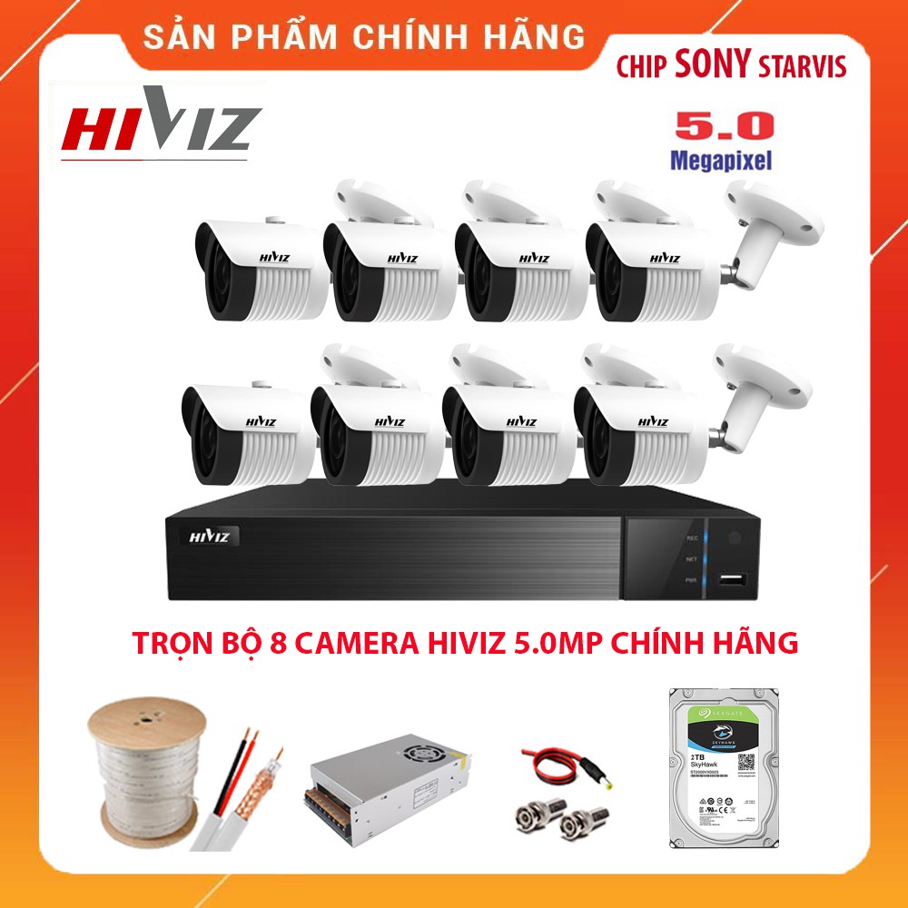 TRỌN BỘ 8 CAMERA GIÁM SÁT HIVIZ 5.0MP(2K), CHIP SONY STARVIS, ĐẦY ĐỦ PHỤ KIỆN, KÈM HDD (500GB/1TB/2TB) - HÀNG CHÍNH HÃNG