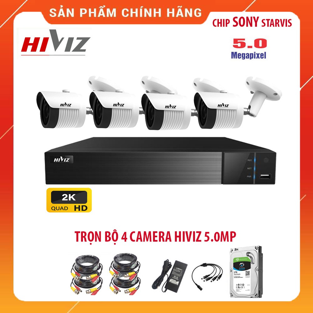 ❎Trọn bộ 4 Camera HIVIZ 5.0MP [2K] - Hàng chính hãng, bảo hành 12 tháng, đầy đủ phụ kiện bao gồm: