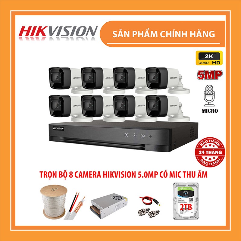 Trọn Bộ Camera giám sát HIKVISION 5.0MP [2K] Có Micro Chính hãng, Ổ cứng HDD, đầy đủ phụ kiện, BH 24Th