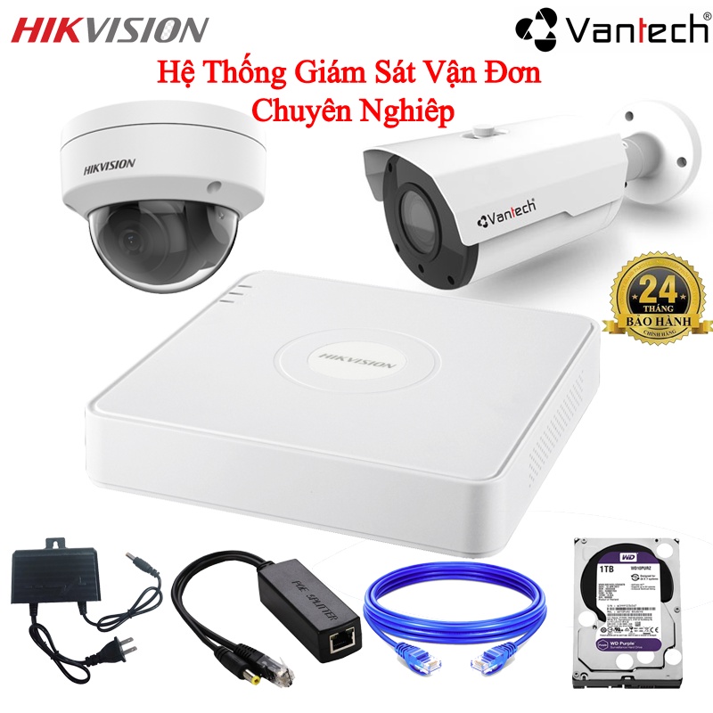 Trọn bộ hệ thống 2 Camera giám sát và soi vận đơn chuyên nghiệp Hikvision Vantech Full HD 1080P Lưu trữ từ 1-3 tháng.