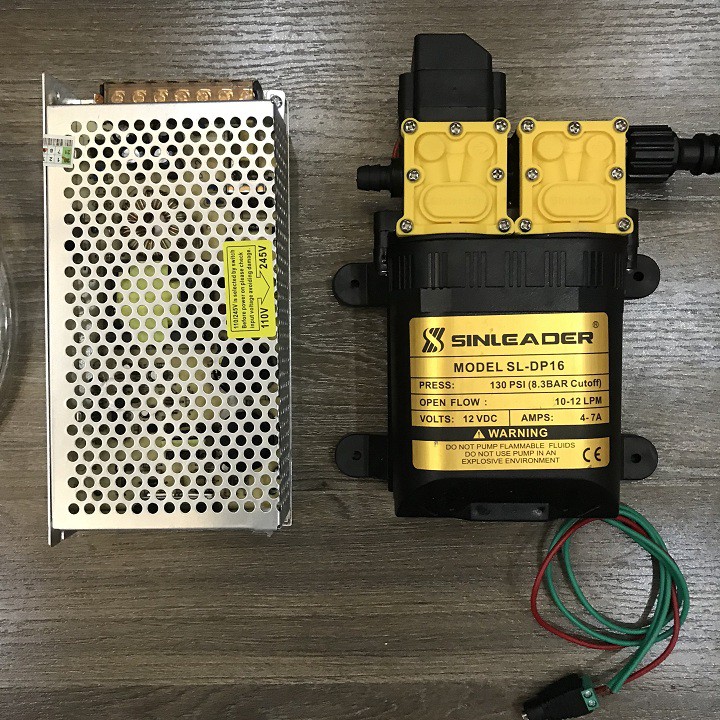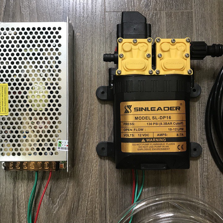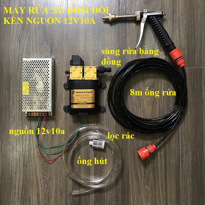 Bộ sản phẩm bao gồm : 1 Bơm đôi 12V CHÍNH HÃNG SINLEADER - 130PSI + Súng Rửa với dây 8M + ống hút dài 2M + lọc rác + NGUỒN 12V10AỨng Dụng : Rửa Xe , Rửa Máy Lạnh Với Áp Lực Cao 0.9Mpa , phun sương ( tối đa lên tới 50 béc phun ) ,dây dài tối da 50m, xịt thuốc , tăng áp máy giặt , máy nước nóng , ...