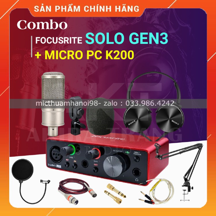 Trọn Bộ Sound Card Focusrite Solo Gen3 Mic PC K200 . Chất Lượng Âm Thanh Cực Hay , Livestream FB , Bigo , Thu Âm