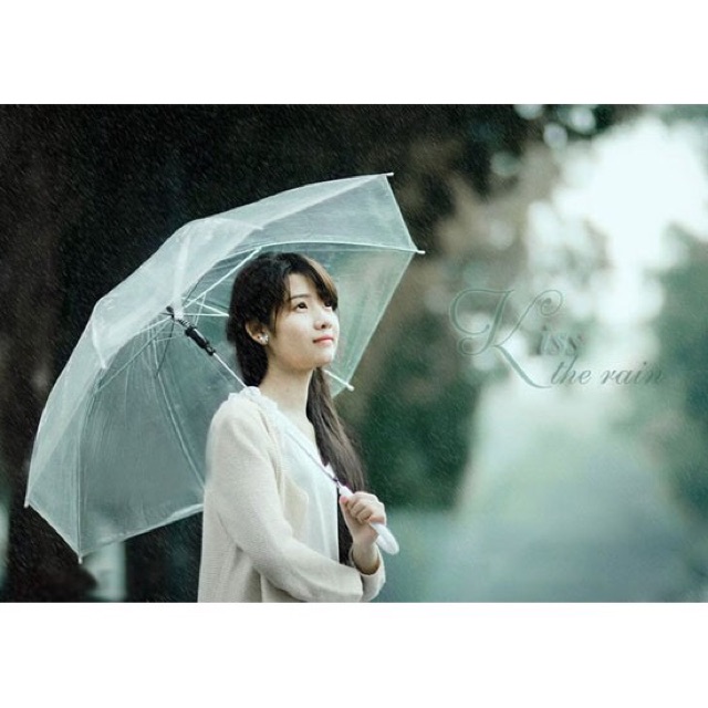 Dù chất liệu nhựa trong dẻo , thiết kế cán dài , giúp che mưa hay chụp hình đều rất đẹp và dễ thương .Kich thuot khi bung đường kính 110 cm