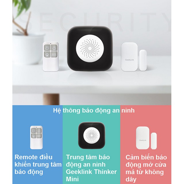Ngoài ra trung tâm Geeklink Mini còn có thể kết hợp với các cảm biến tần số 315Mhz ngoài như chuyển động PIR, má từ, báo rung, báo gas, rò rỉ nước,…cũng giúp người dùng phát hiện các tình trạng có đột nhập, rò rỉ khí gas, rò rỉ nước, hoặc báo cháy…từ đó có những biện pháp xử lý nhanh chóng nhằm giảm thiểu thiệt hại xảy ra.