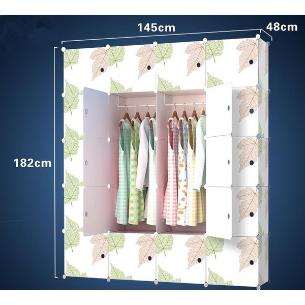 Tủ cao 185cm, rộng 148cm, sâu 47cmRộng rãi gấp đồ, treo đồ, độ chịu lực 10-12kg mỗi ngăn