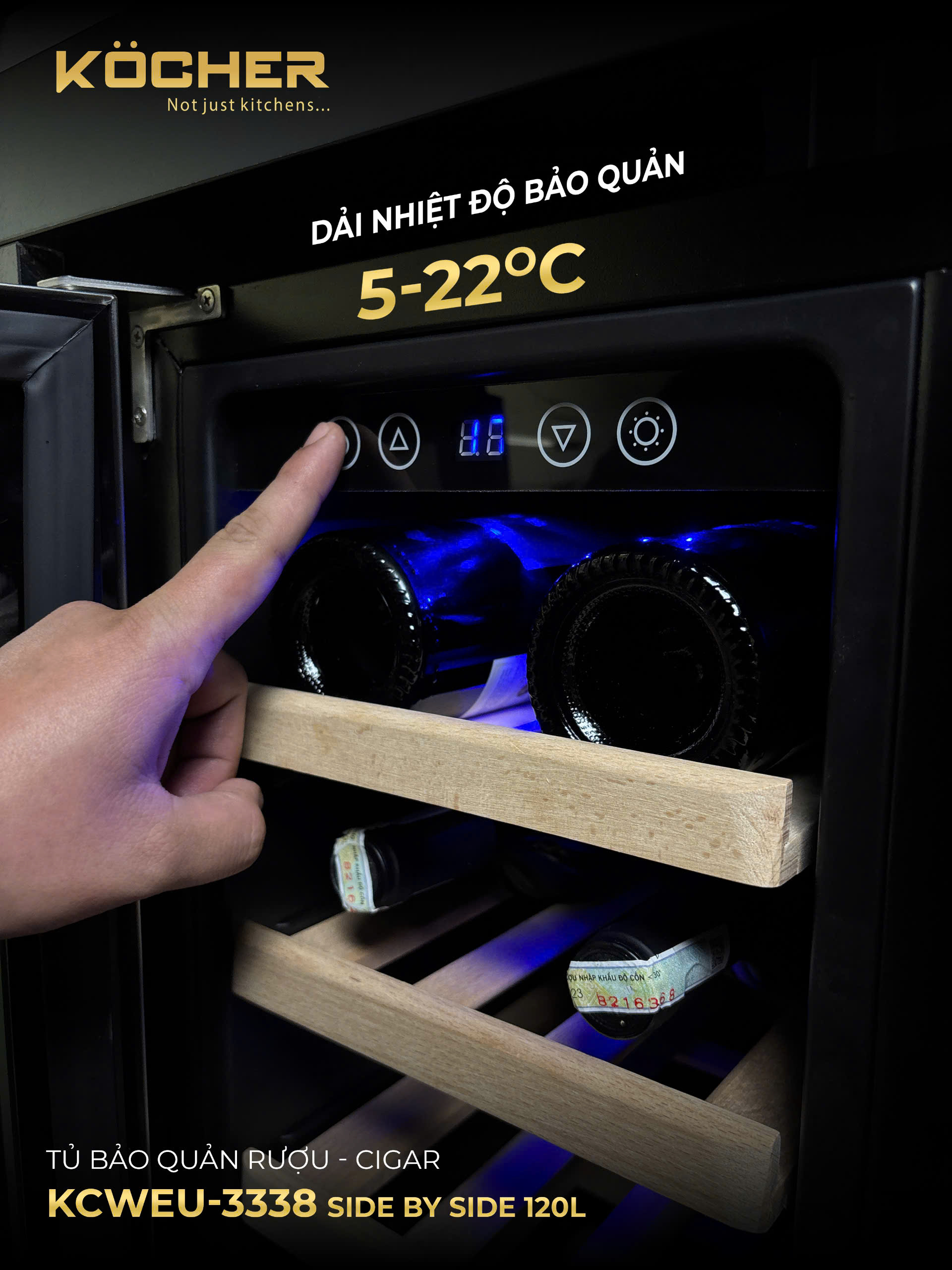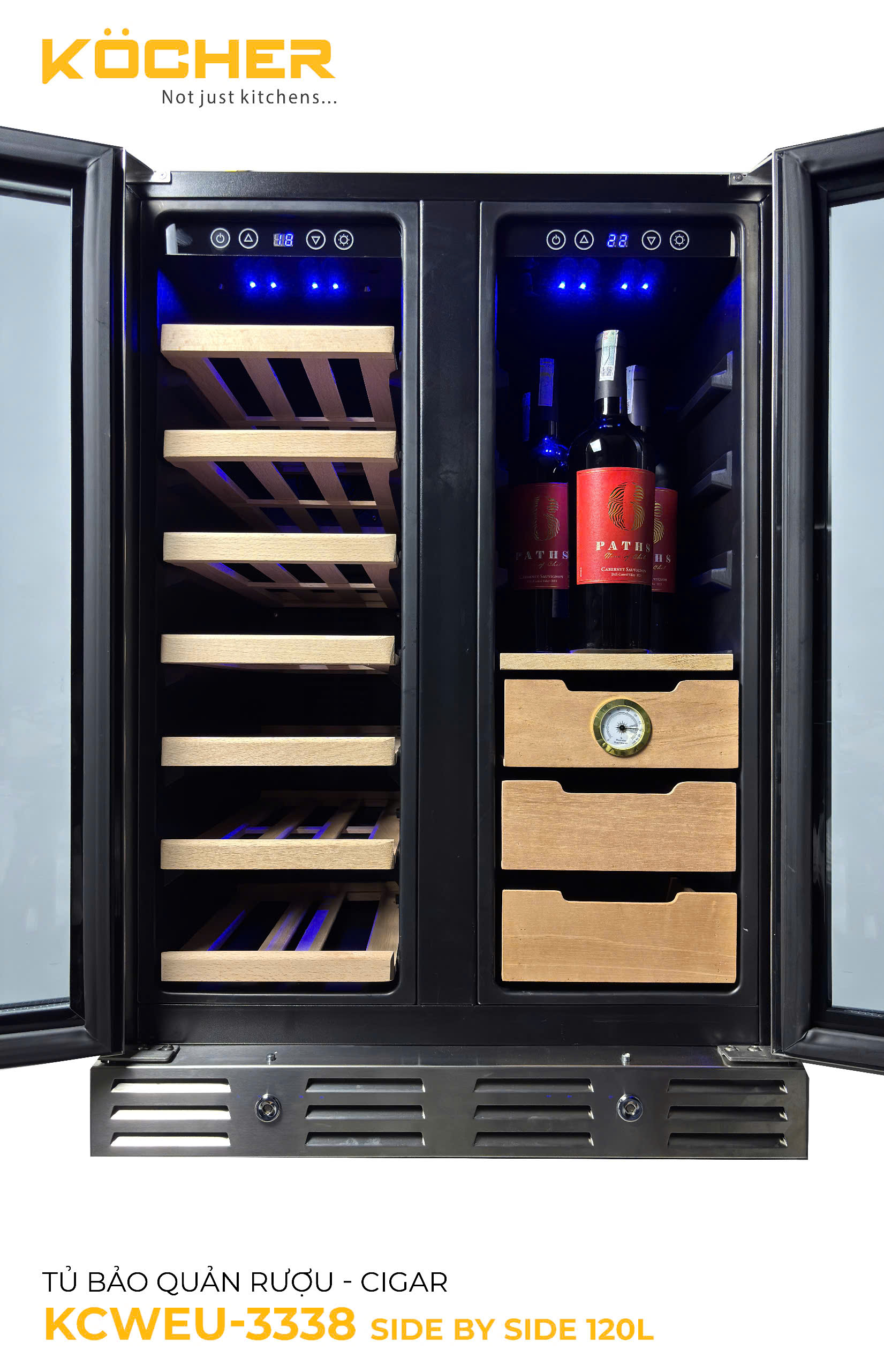 TỦ BẢO QUẢN RƯỢU - CIGAR KCWEU-3338 (SIDE BY SIDE 120L). Hàng chính hãng