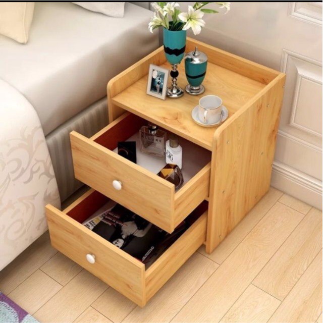 Kệ để đầu giường nhỏ gọn rất tiện ích: gồm 2 tầng có 2 ngăn kéo ray xịn loại tốt 3 tầng chứa có thể đựng sách, báo, nước hoa, và phụ kiện như đồng hồ, trang sức...