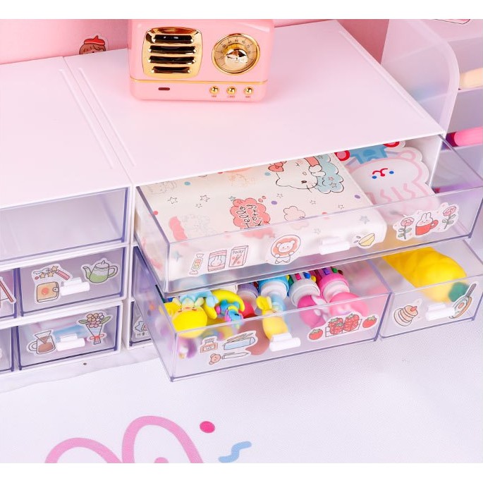 Tủ đựng đồ mini, Kệ để bàn trong suốt đa năng cho học sinh có thể xếp chồng " Tặng kèm Sticker trang trí "