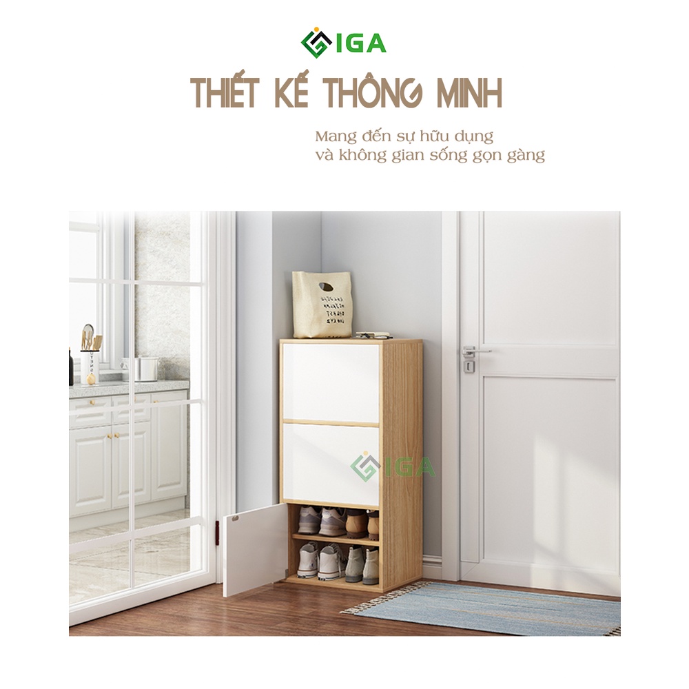 Tủ giày gỗ 3 tầng IGA thiết kế đơn giản tiết kiệm diện tích phong cách Nordic - GP146---------------