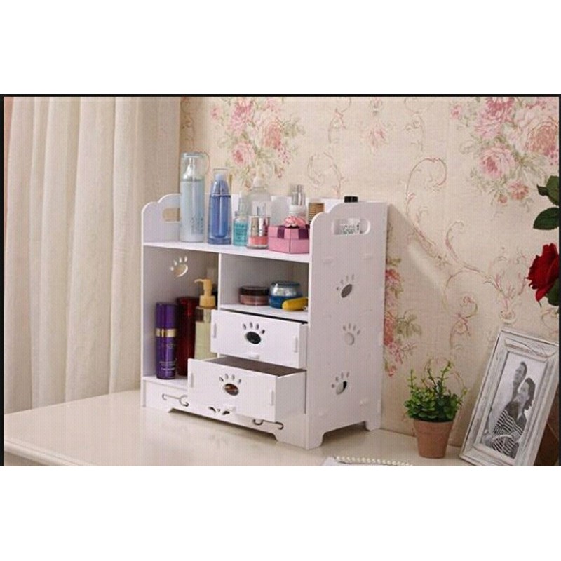 Tủ gỗ đựng đồ trang điểm cá nhân họa tiết chân chó siêu xinh, độc đáo, sắp xếp bàn phấn gọn gàng (Màu trắng)