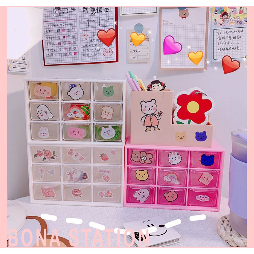 ▪️Đã có em tủ mini cứu cánh đây bà con ơi, với kết cấu 9 ngăn kéo trong suốt để các cậu dễ dàng tìm được mẫu tape mình cần, khi rảnh rỗi cũng có thể ngắm các em ấy nữa nhé.