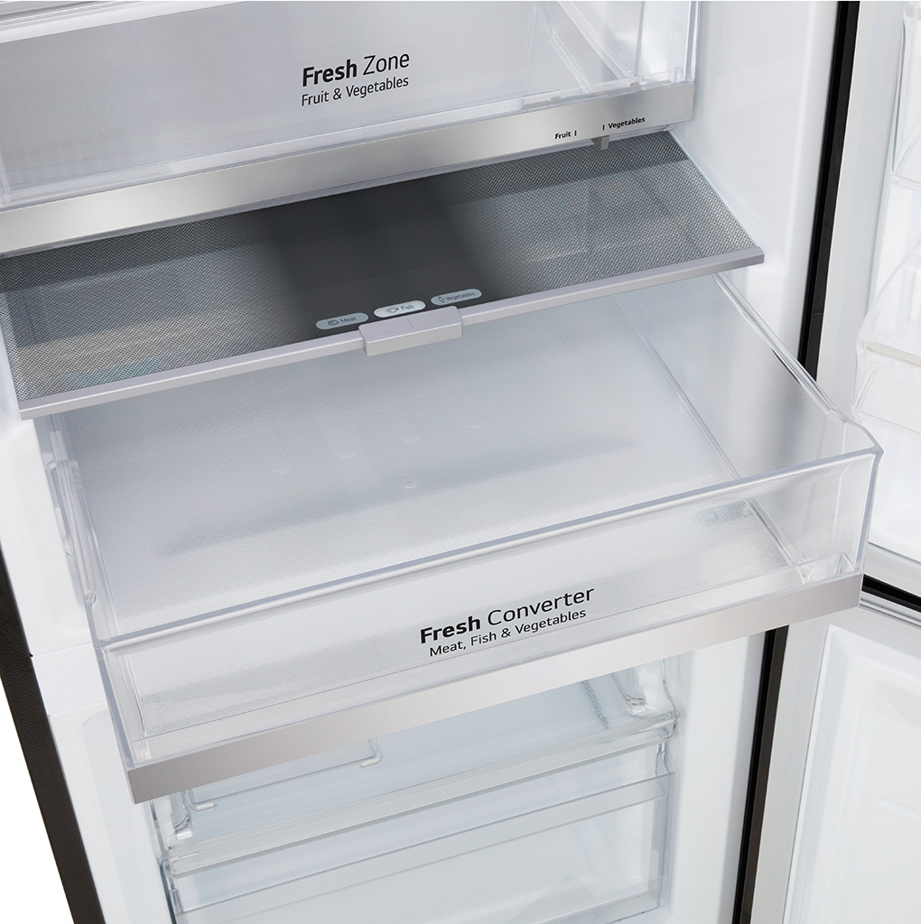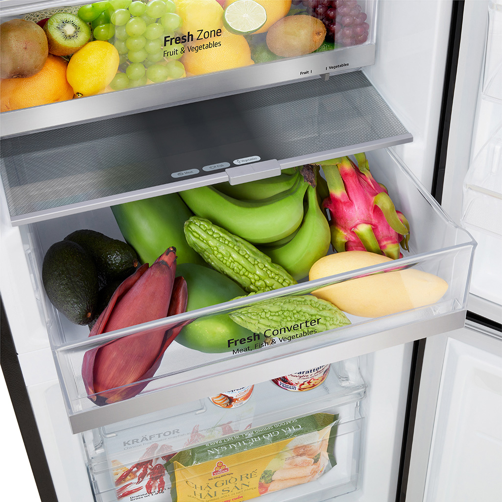 Tiết kiệm điện hiệu quả, vận hành êm ái nhờ động cơ Inverter điều chỉnh tốc độ Thiết kế ngăn đá dưới giúp hạn chế tần suất khom lưng khi lấy đồ ở ngăn mát Linear cooling giảm biến động nhiệt độ, giữ hương vị tươi ngon lên đến 7 ngày Làm lạnh cửa tủ DoorCooling và đa chiều, lưu thông khí lạnh nhanh hơn và đều hơn Loại bỏ vi khuẩn, mùi hôi khó chịu nhờ ứng dụng công nghệ Hygiene Fresh Điều khiển từ xa mọi lúc mọi nơi bằng điện thoại thông qua ứng dụng LG ThinQ Chẩn đoán thông minhSmart Diagnosis giúp nhận biết nhanh các lỗi, kịp thời khắc phục Tủ lạnh LG dung tích sử dụng 335 lít phù hợp gia đình 3 - 4 người