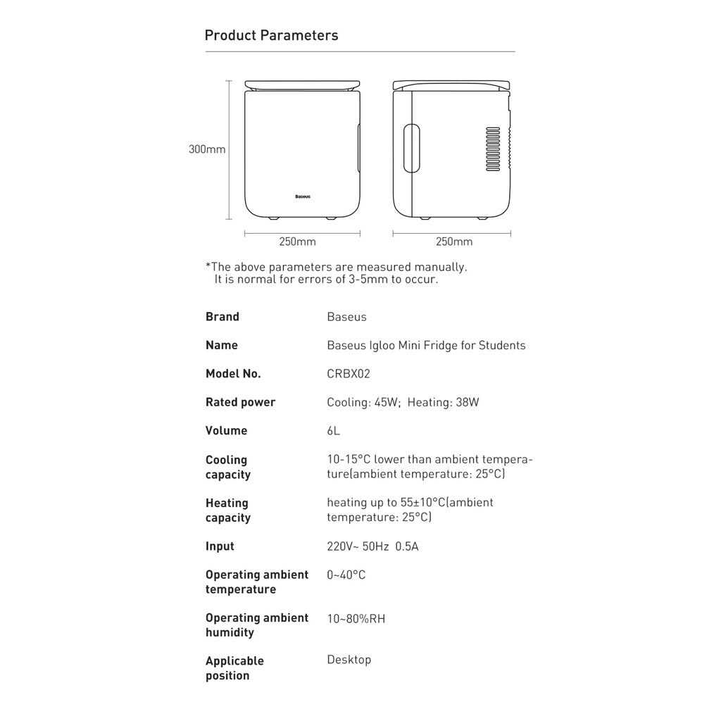 Tủ lạnh mini Baseus Igloo Mini Fridge for Students (6L, làm mát và giữ ấm, 220V) Dùng Trên Xe Hơi, Cho Gia Đình, Văn Phòng⚡️THÔNG SỐ KĨ THUẬT & ĐẶC ĐIỂM :