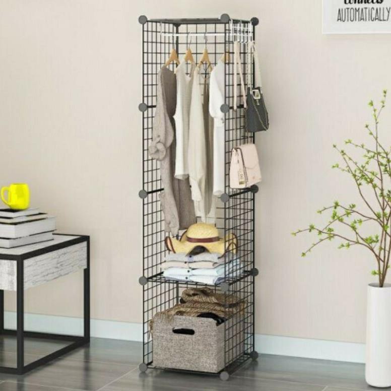 Tủ Lưới 4ô Đa Năng Dùng Để Sách Và Treo Đồ ( Màu Trắng Và Đen)