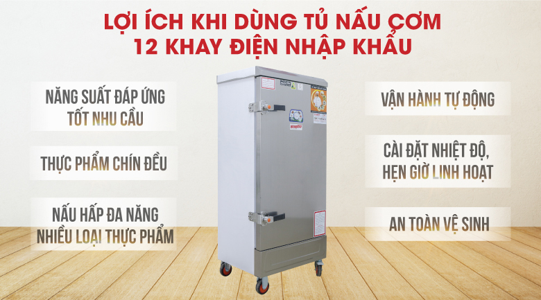 Sử dụng tủ nấu cơm 12 khay nhập khẩu, bạn sẽ nhận được rất nhiều lợi ích thiết thực: