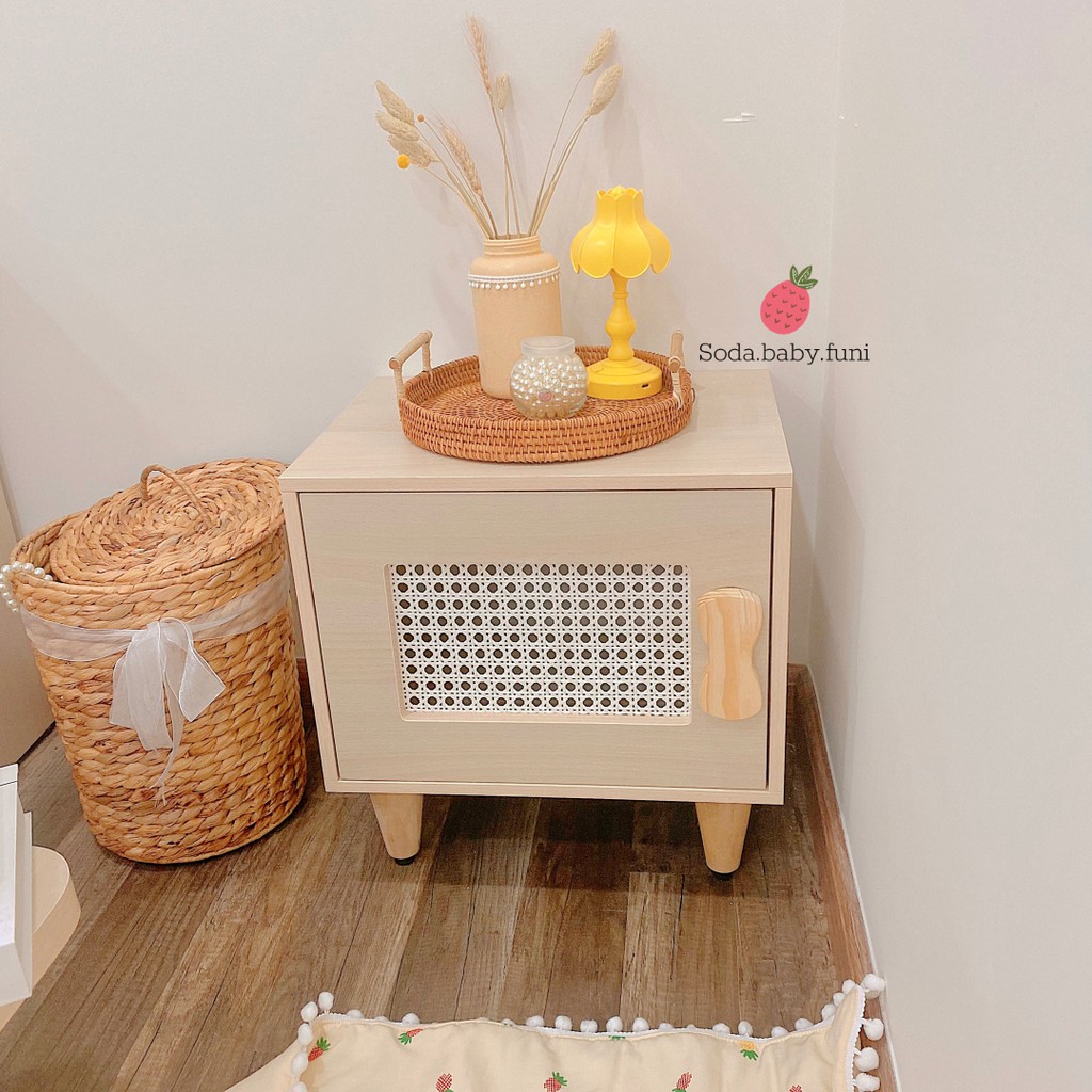 .. Tủ nhỏ decor lưới mắt cáo vintage màu trắng gỗ dễ thương trang trí nhà cửa phòng ngủ mã 001