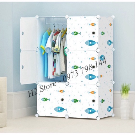 TỦ NHỰA ĐA NĂNG THÔNG MINH LẮP GHÉP ĐA NĂNG 6 Ô CỬA CON CÁ ĐỂ ĐỒ CHO TRẺ sâu 47cm