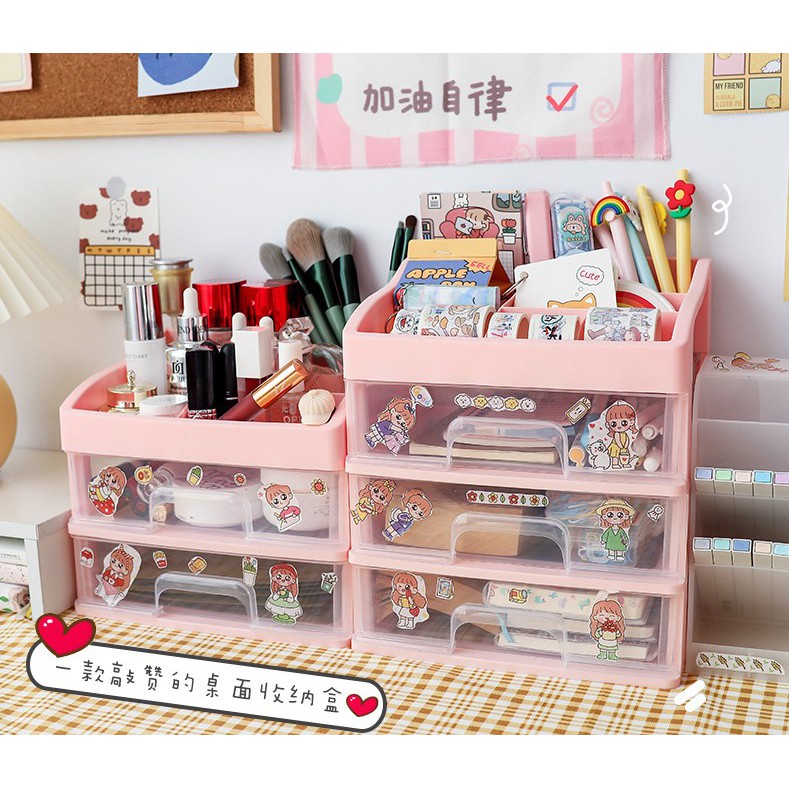Tủ Nhựa Mini Để Bàn Đựng Đồ Đa Năng Nhiều Ngăn Kéo Kèm Sticker