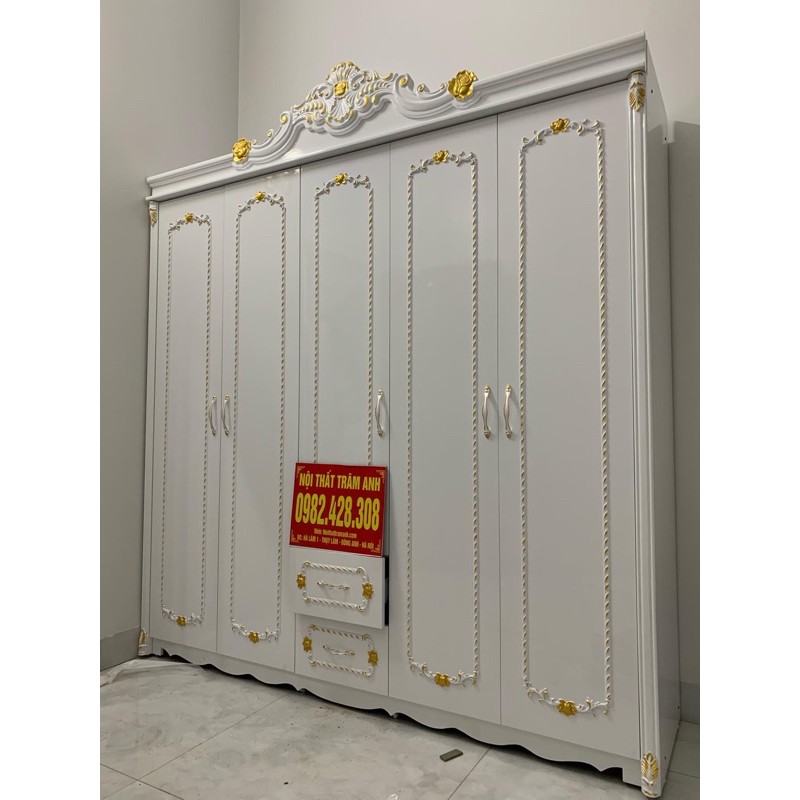 Tủ tân cổ điển 5 buồngChất liệu gỗ mdf nhập malaysia, bọc da, vẽ nhũ vàng