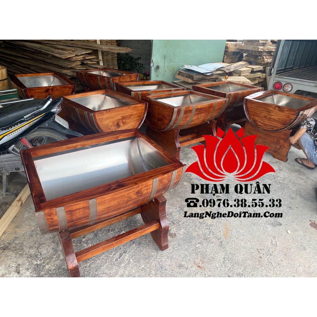 CSSX Thùng gỗ Phạm Quân nhận sản xuất theo kích thước riêng phù hợp với từng nhà hàng, quán bar,... không gian trưng bày