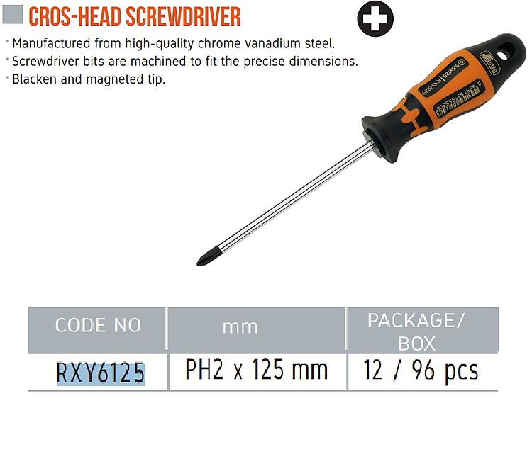 Giới thiệu Tua vít 4 cạnh PH2 x 125mm Retta RXY6125 Thổ Nhĩ Kỳ