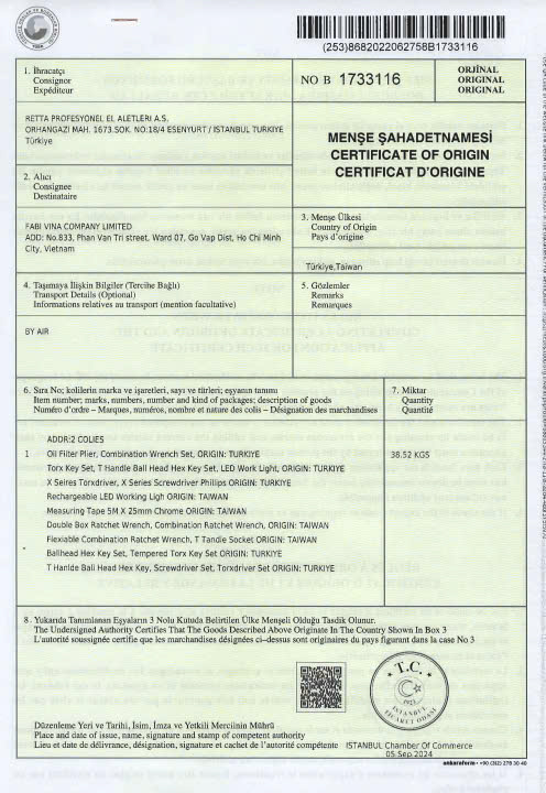 Xuất xứ (Made in) | Thổ Nhĩ Kỳ |