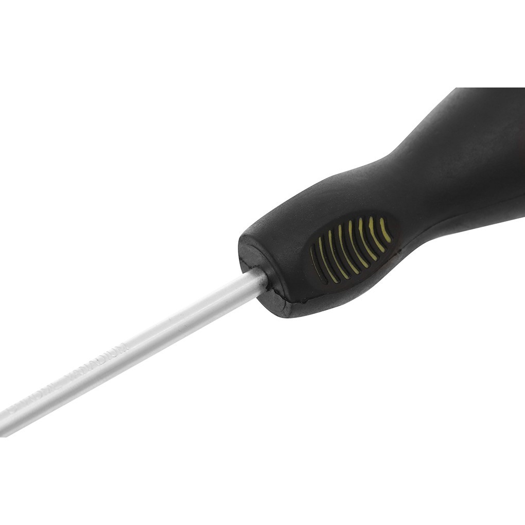 Đầu mạ chrome, phủ Oxit làm cứng và có từ tính.Đầu vít dẹp rộng 5mm x dài 105mm. Tay cầm dài 100mm x rộng 31mm.