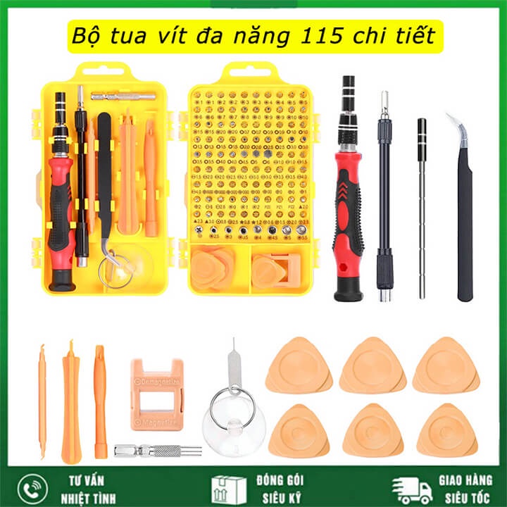 Bộ tua vít đa năng Bộ Tua tô Vít Từ Tính 115 Chi Tiết Dùng Sửa Chữa Điện Thoại, Laptop, Máy Tính, Thiết Bị Điện TửĐặc điểm: